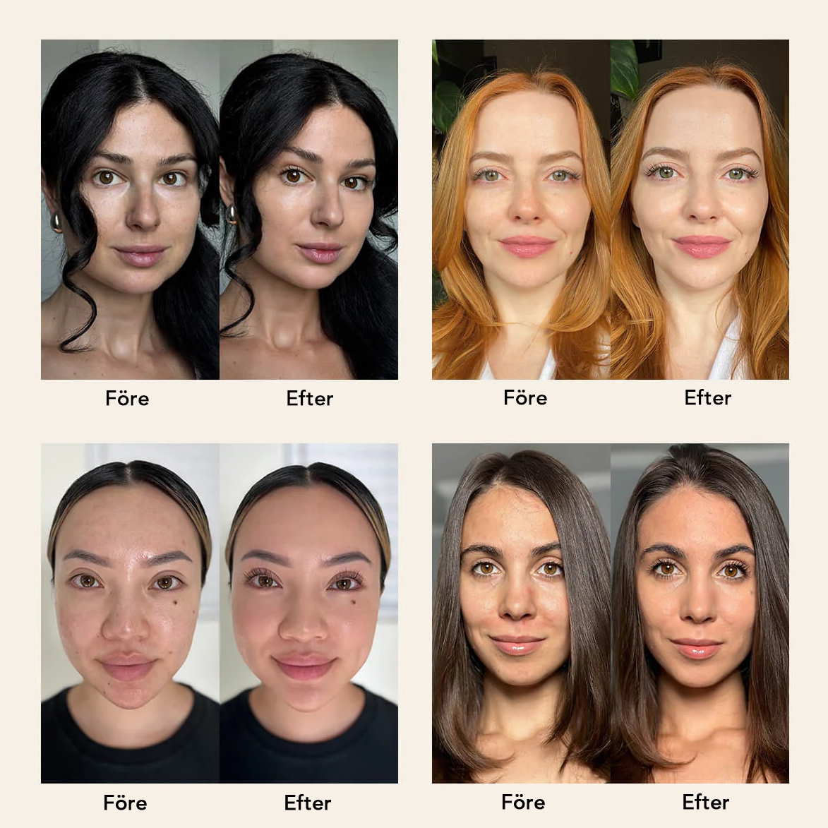 Vår foundation ger ett jämnt resultat som håller i upp till 10 timmar – inga touch-ups, ingen flammighet.